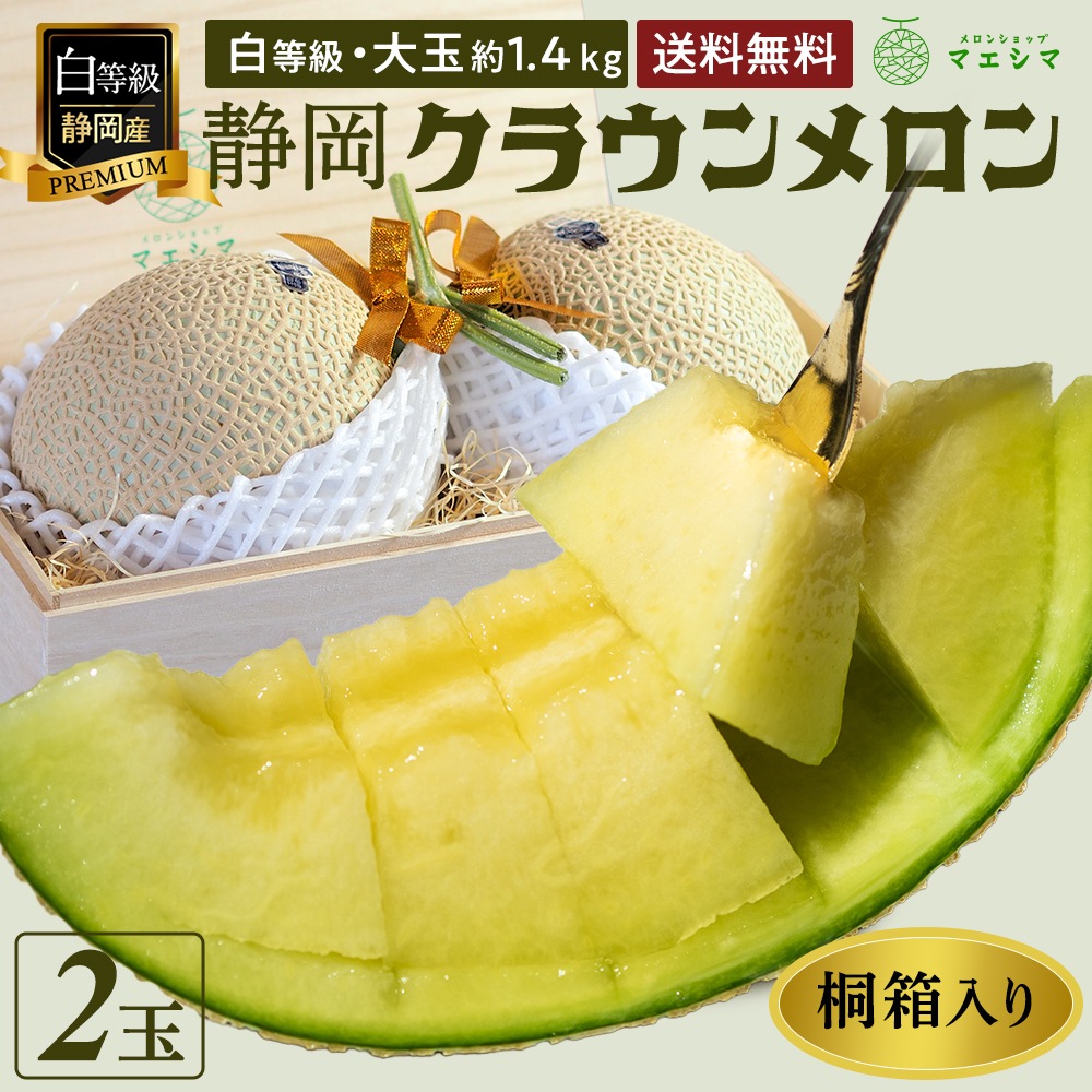 | 商品名 | 桐箱入りクラウンメロン【並(白等級)】大玉(1.4kg前後)2玉入り |