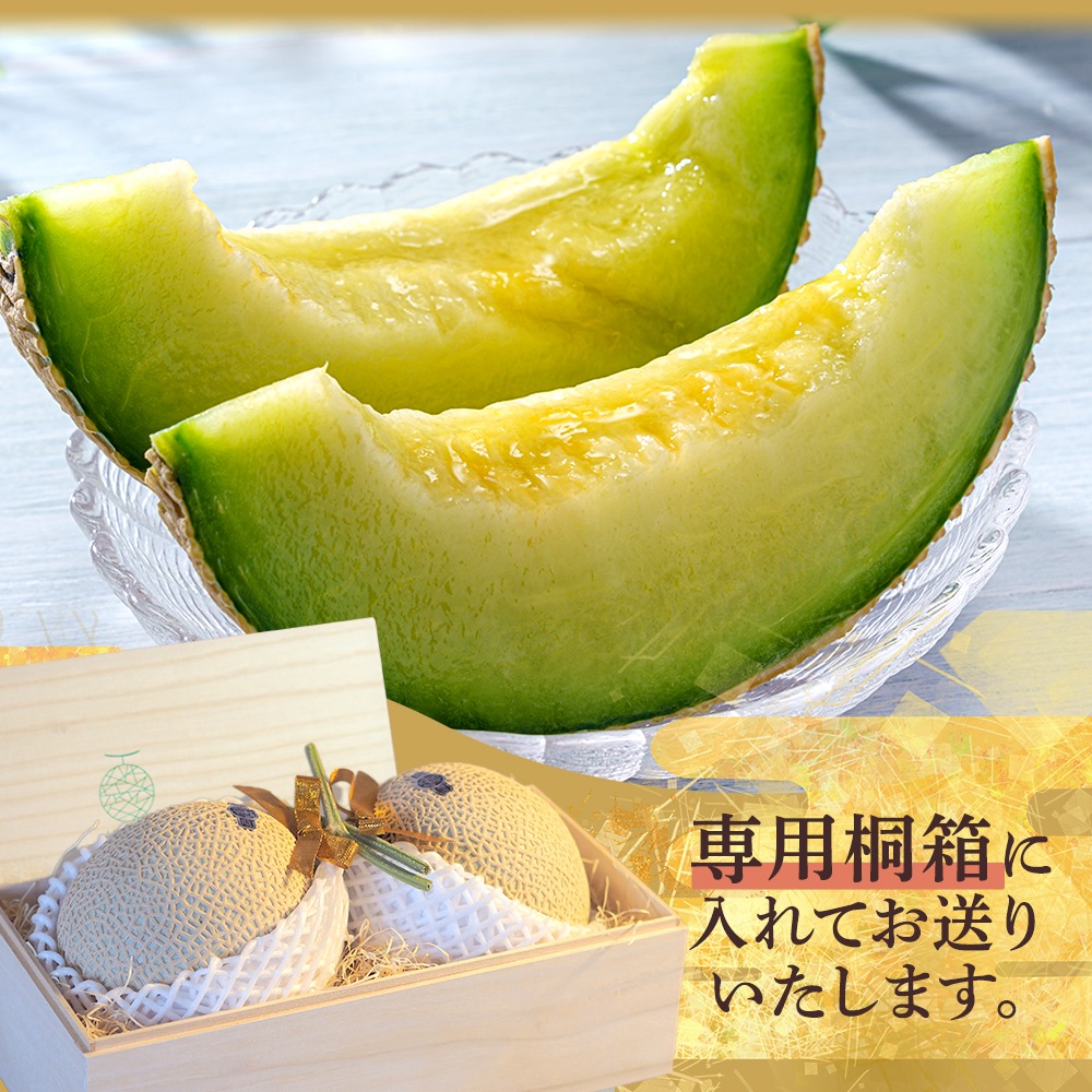 桐箱入りクラウンメロン【並(白等級)】大玉(1.4kg前後)2玉入り