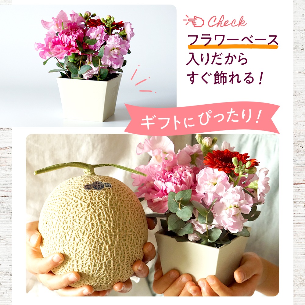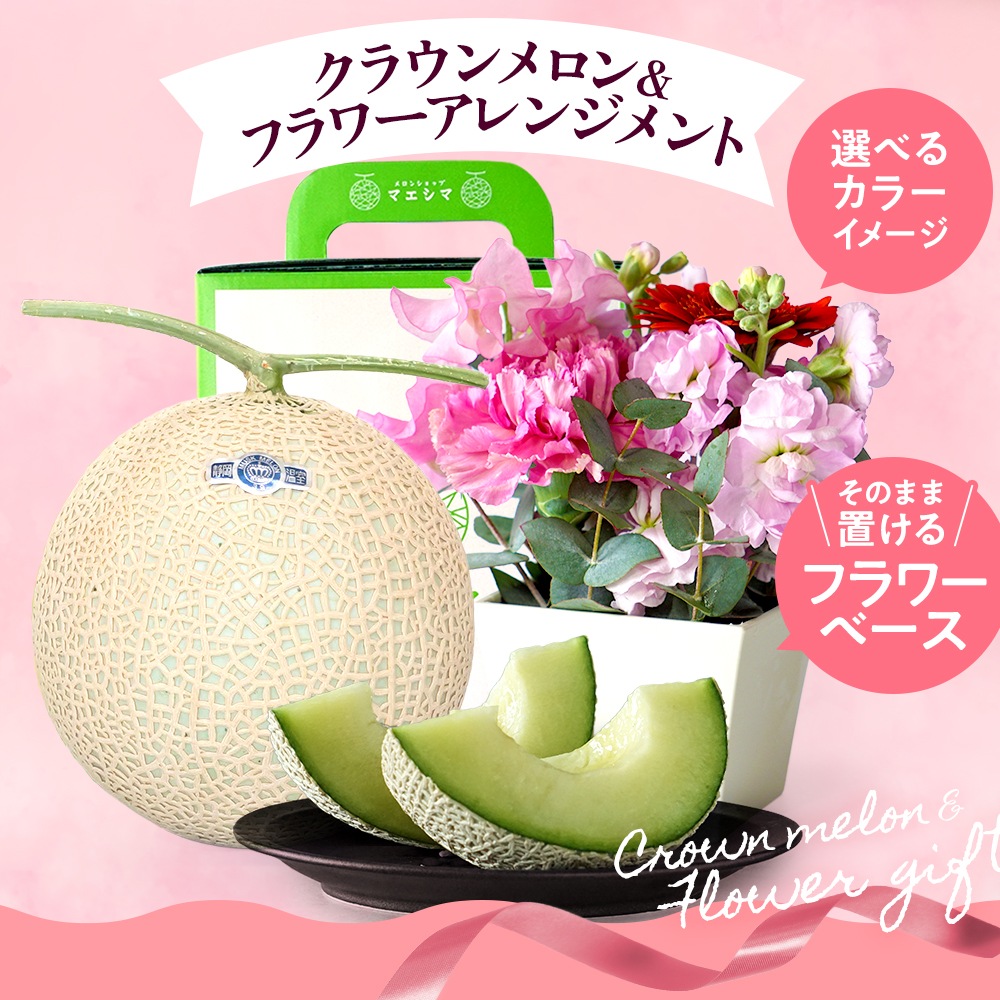 クラウンメロン+フラワーアレンジメントセット 【上(山等級)】中玉(1.3kg前後)1玉入り