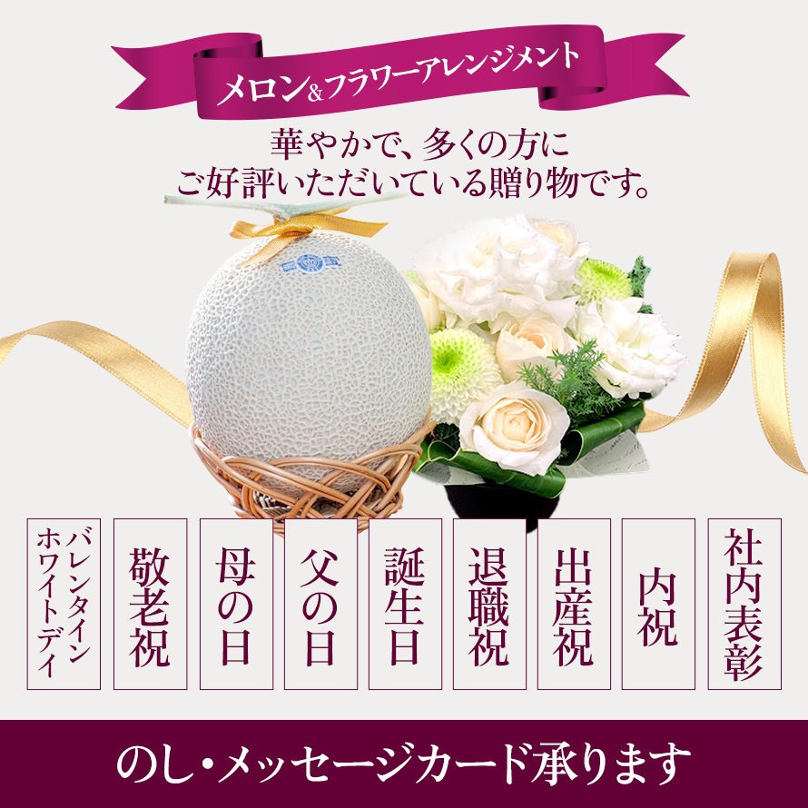 | 内容量 | クラウンメロン 山等級1玉 フラワーアレンジメント |