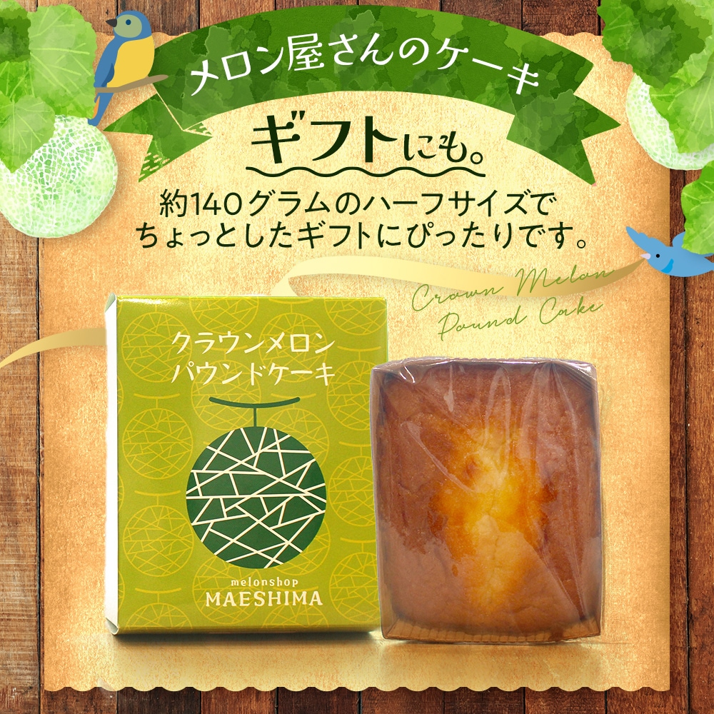 クラウンメロンピューレをたっぷりと贅沢に使用した香り高いパウンドケーキです。 ちょっと贅沢なおやつに。親しい方へのプレゼントに。